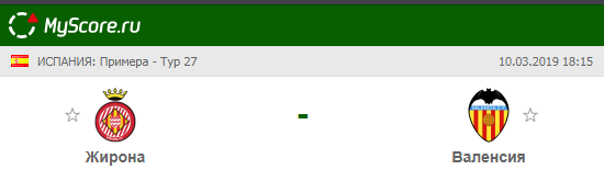Жирона (Жирона) vs Валенсия (Валенсия), который состоится 10.03.2019 в 18:15 по МСК.