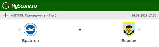 Прогноз на матч Брайтон энд Хоув Альбион-Бёрнли 14.09.2019
