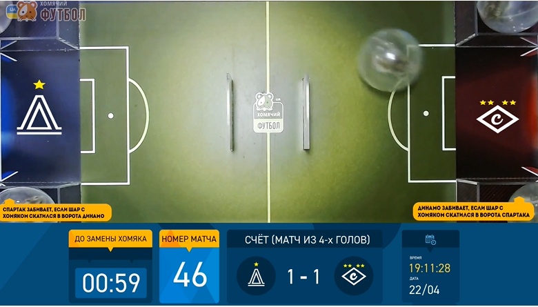Внутри шарика находится хомяк. Его размещают на небольшом игровом поле и накрывают коробочкой. На поле выставляют ворота условных команд. В момент начала матча коробку убирают, и хомяк закатывается в одни из двух ворот. Каждый забег в рамку равен одному голу. Игра ведется до четырех голов.